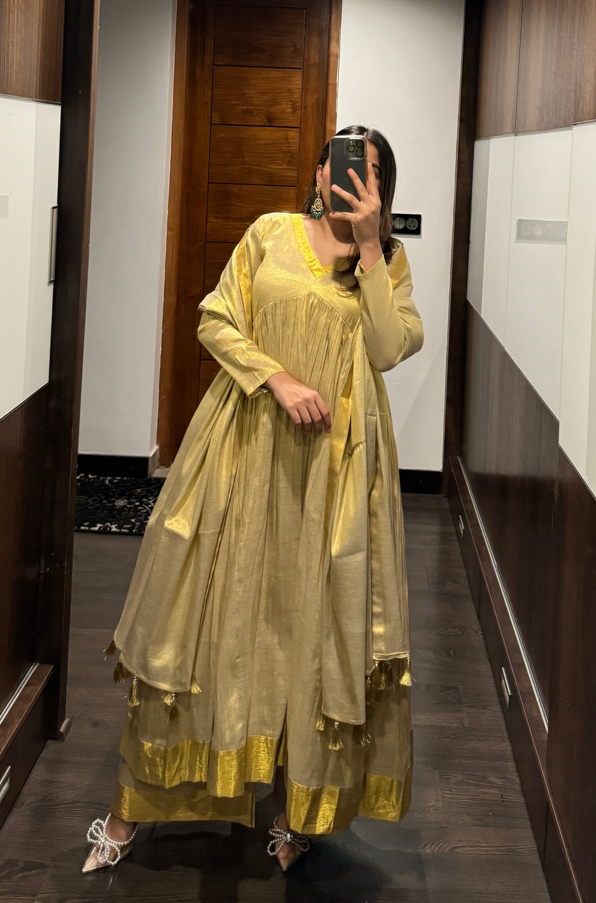 Elevate your wardrobe with our exquisite Dark Tissue Set, a stunning blend of tradition and elegance. This bestselling ensemble features a beautifully crafted matching dupatta, along with a perfectly tailored bottom, all made from the finest handloom fabric. The rich dark tissue brings a luxurious touch, making it an ideal choice for any special occasion or celebration.