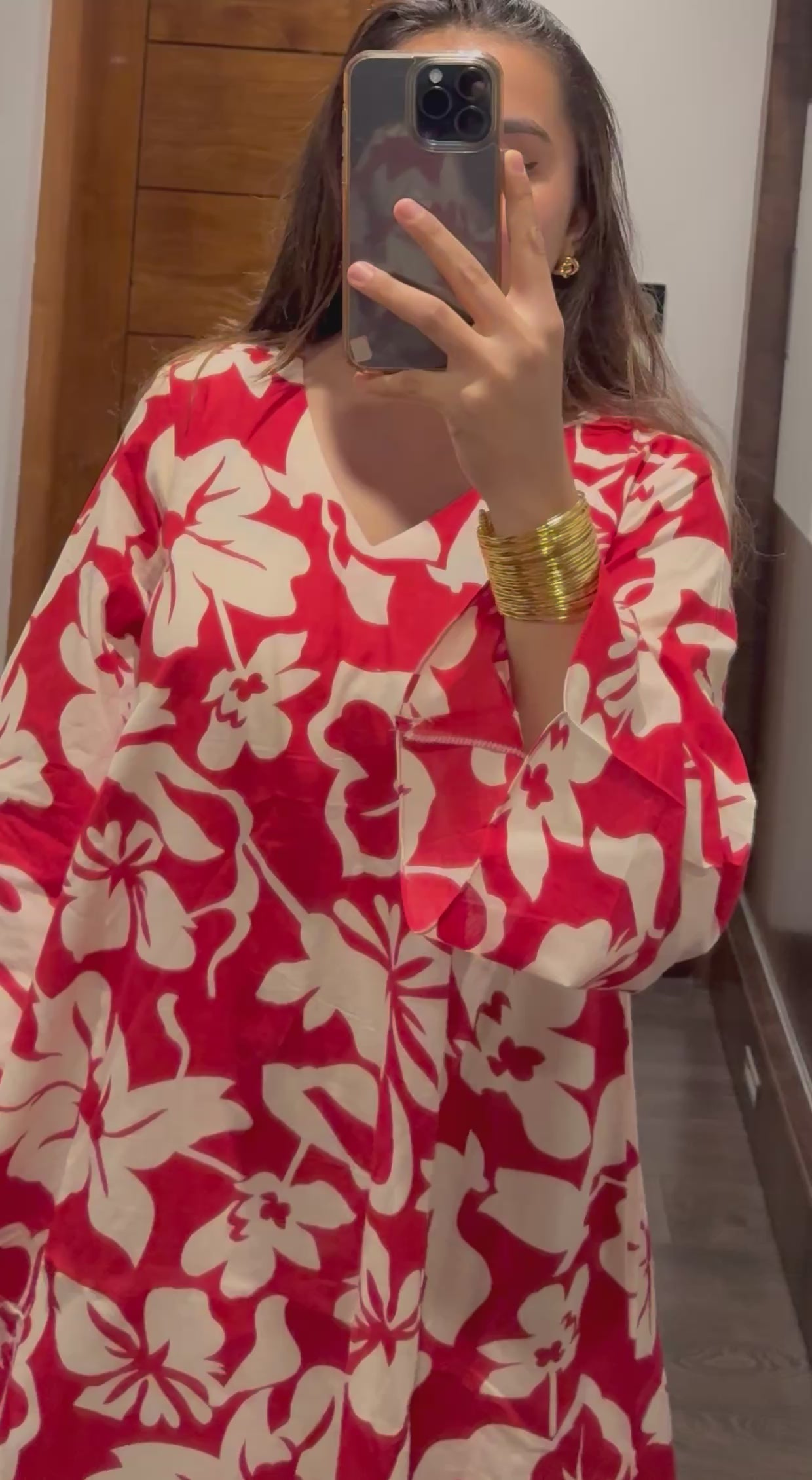 A bold red-and-white floral cotton flare kurta paired with a contrasting red striped bottom. Lightweight, vibrant, and perfect for a chic everyday look.
